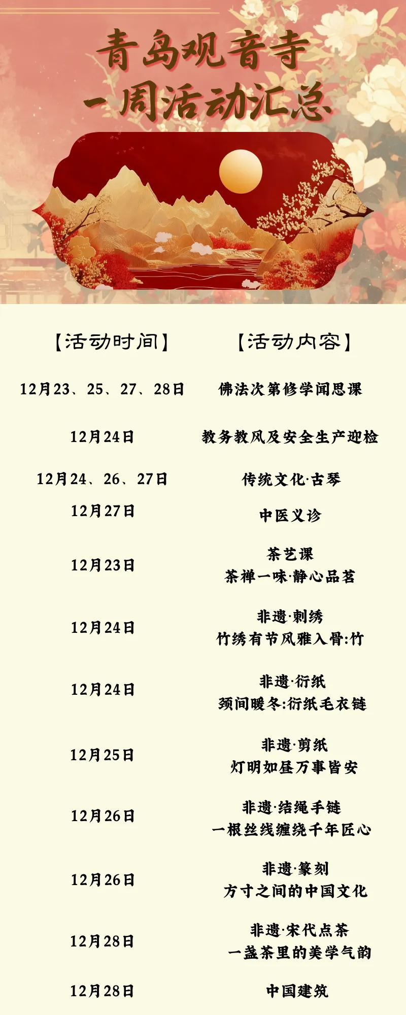 青岛观音寺的一周(12月22日--12月28日)