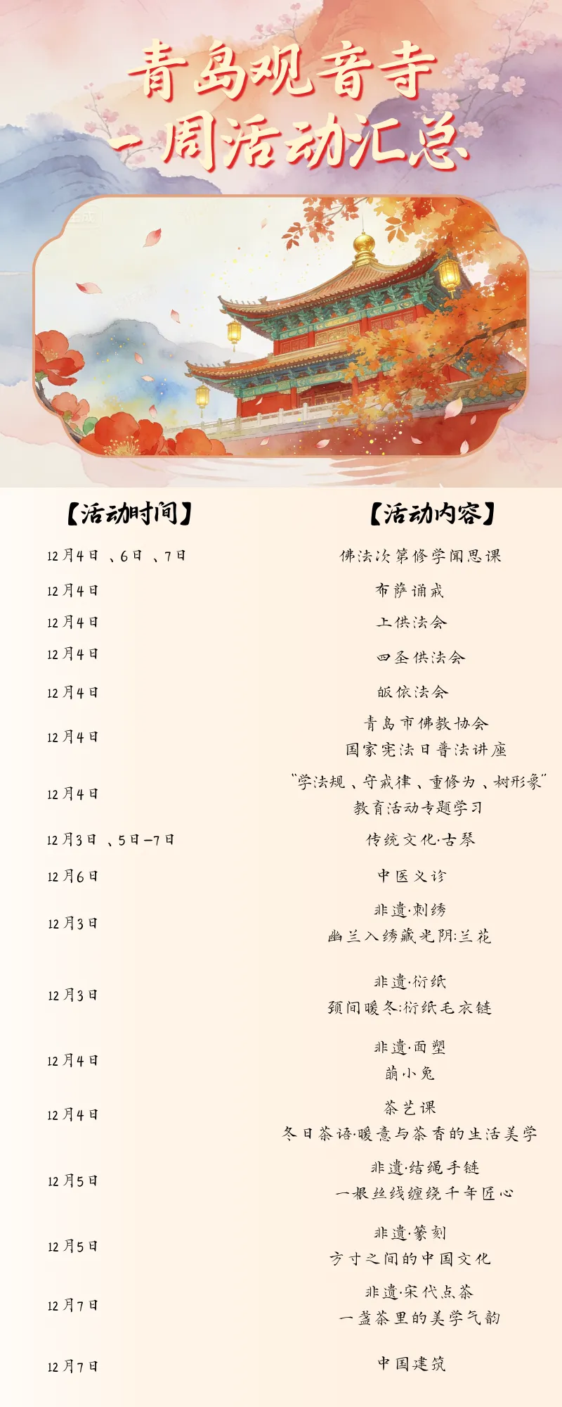 青岛观音寺的一周(12月1日--12月7日)
