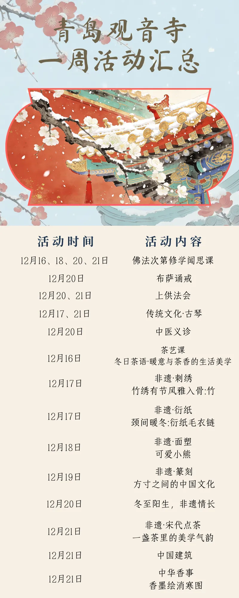 青岛观音寺的一周(12月15日--12月21日)