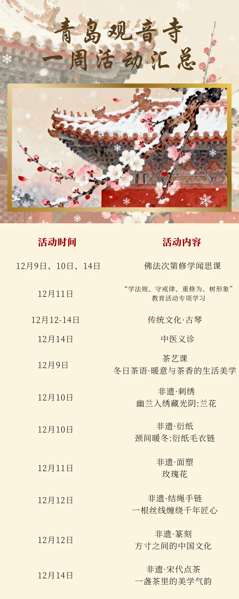 青岛观音寺的一周(12月8日--12月14日)