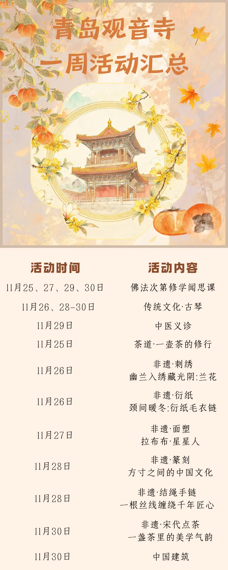 青岛观音寺的一周(11月24日--11月30日)