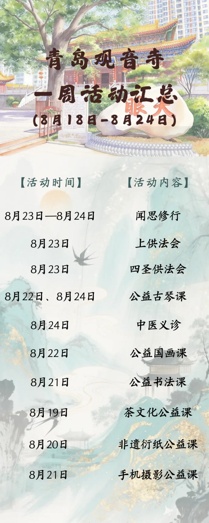 青岛观音寺的一周(8月18日--8月24日)