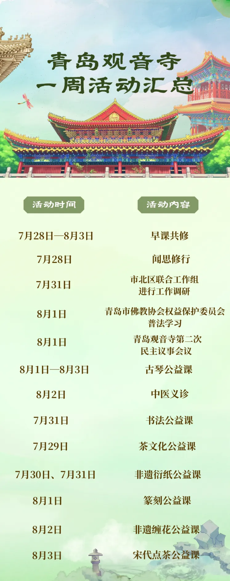 青岛观音寺的一周(7月28日--8月3日)
