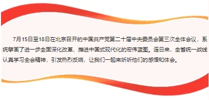 7月15日至18日在北京召开的中国共产党第二十届中央委员会第三次全体会议,系统擘画了进一步全面深化改革、推...