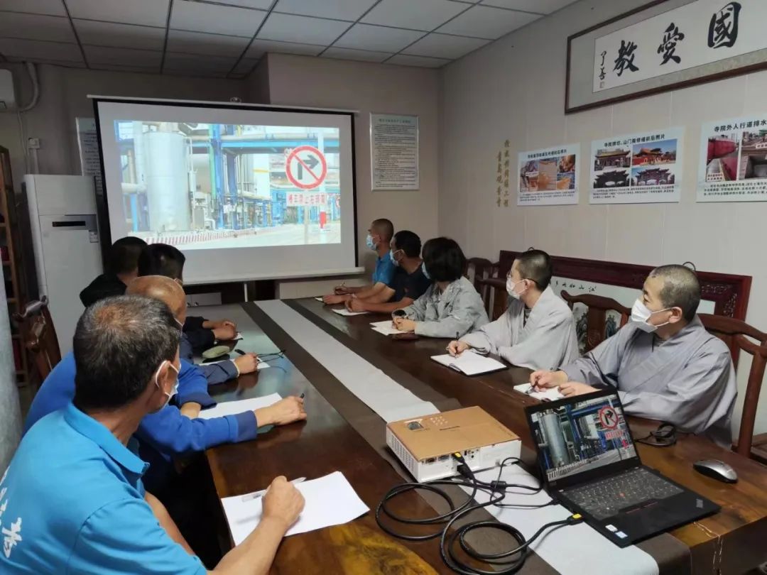 2022年6月10日下午2:00,青岛观音寺组织全体僧众及常住观看学习最新安全月视频——重大生产安全事故警示片《红线》。