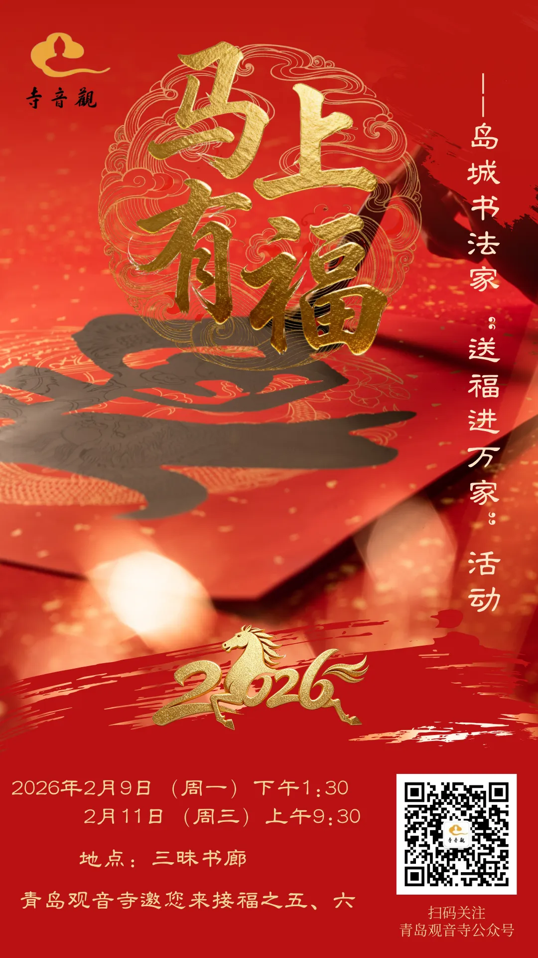 青岛观音寺的一周(2月2日--2月8日)暨本周“送福进万家”公益活动预告