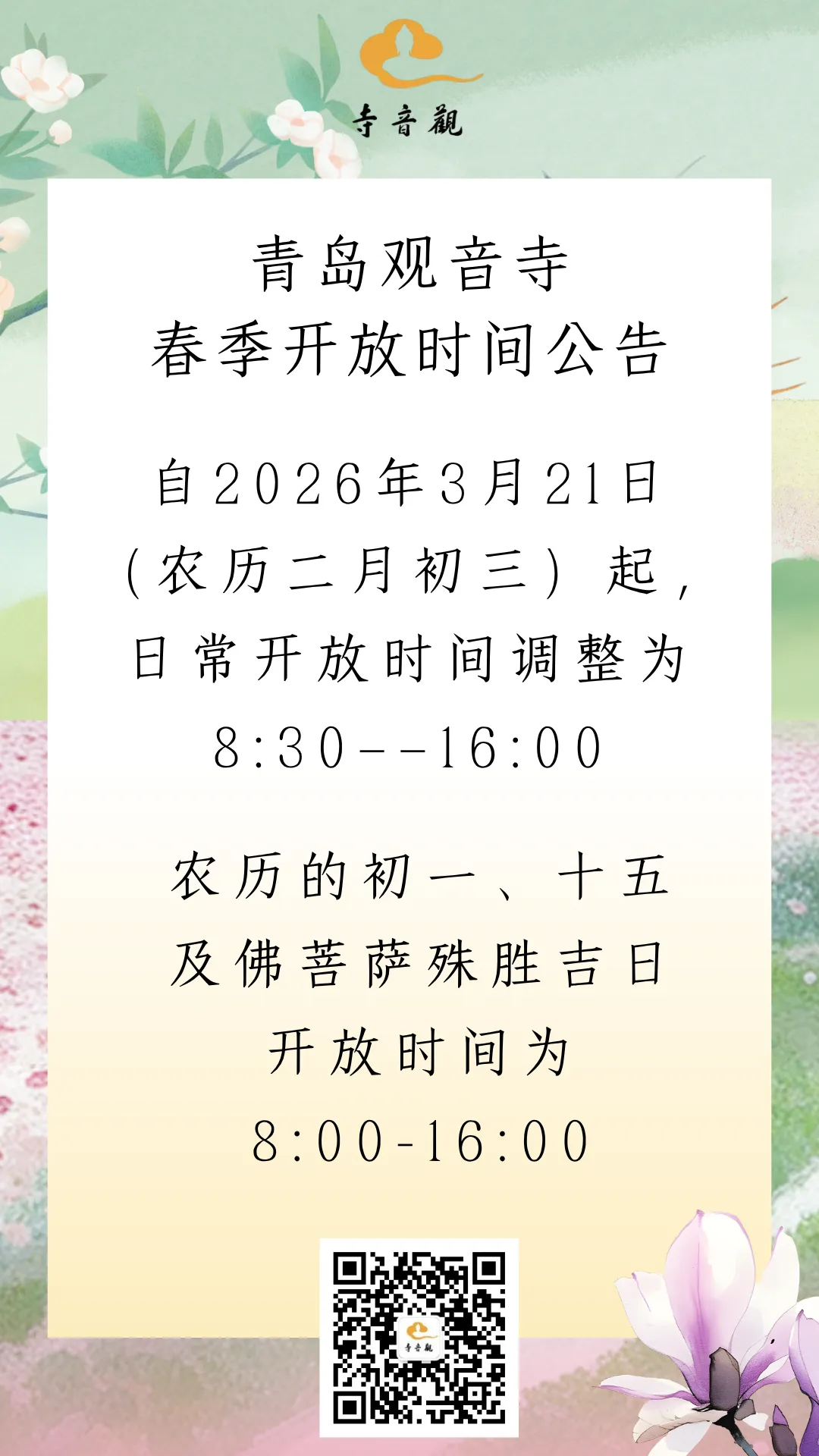 通知丨青岛观音寺春季开放时间调整公告